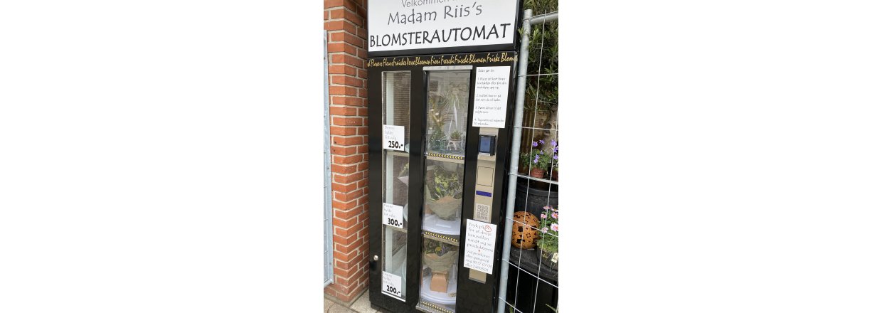 I februar 2021 fik vi sat en superflot Blomsterautomat op udenfor butikken, så du nu kan handle hos os døgnet rundt :)