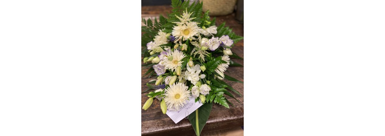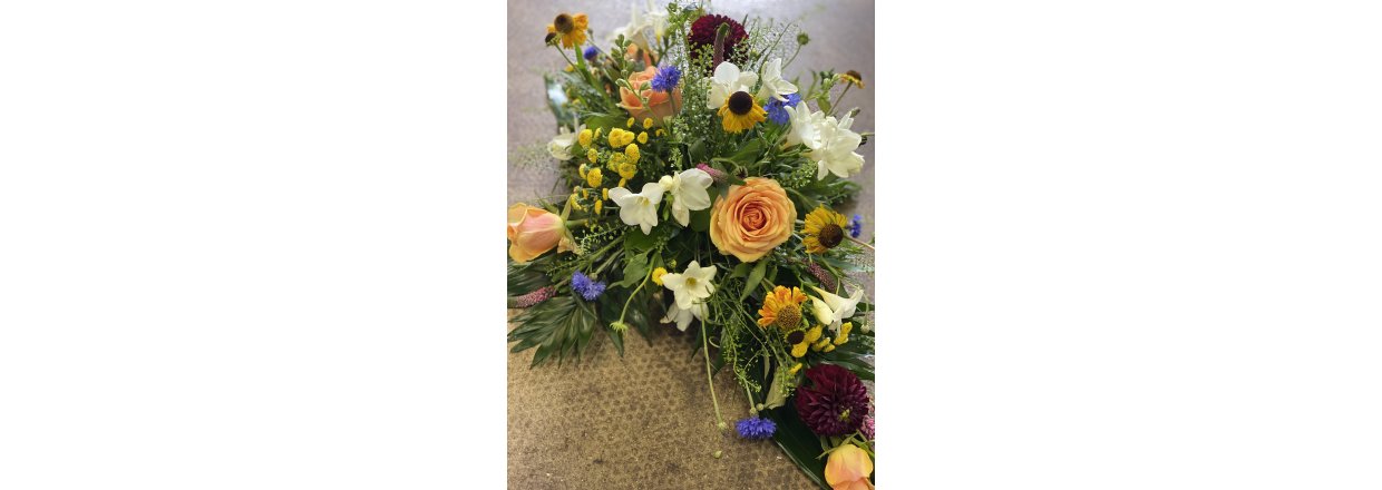 En sidste hilsen. Vi har samlet et lille udpluk af begravelsesbinderi her - hver især lavet unikke og efter kundernes ønske, hvilket vi vægter meget højt.